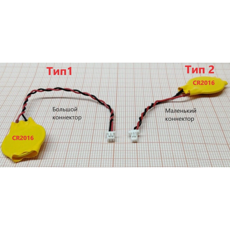 Батарейка CMOS BIOS CR2016 с коннектором 2 pin-1.0 мм (ТИП-2)
