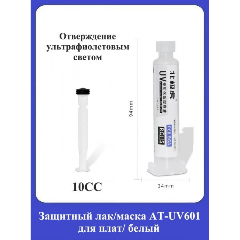 Защитный лак-маска AT-UV601 для плат, белый